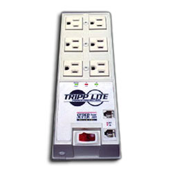 Tripp Lite's 6 AC Outlet Surge, Spike and Line Noise Suppressor with Modem/Fax Protection FM Surge Suppressor has 6 outlets and built-in RJ11 jacks prevent surges from damaging your modem/fax/phone...