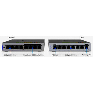 The UniFi Switch 8-port models feature Gigabit Ethernet ports in a compact form factor. The switches are fully manageable, delivering robust performance and intelligent switching for your networks. US-8-60W Features:...