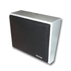 Wall surface mounted metal speaker assembly complete with speaker, amplifier, built-in volume control, sloped baffle and mounting bracket. Features: Utilizes standard CAT 3, 5, OR 6 cable Excellent voice and...