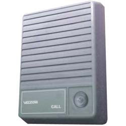 Valcom Surface Mount Doorplate Speaker is a durable gray plastic door plate speaker with call button. The unit provides handsfree, talkback capability from an outside entry or doorway when used with the Valcom Door Durable gray plastic door plate speaker with call button. The unit provides handsfree, talkback capability from an outside entry or doorway when used with the Valcom Door Entry Management and Intercom Systems. The unit features a water resistant 2 inch speaker and corrosion resistant hardware.