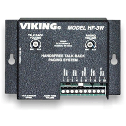Viking Two-Way Handsfree Talkback Amplifier provides handsfree talkback paging for use in city desks, shipping, warehouses, service departments or any application where quick answers are needed. HF-3W Features: Alert tone...