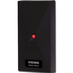 The model PROX-1 is a HID compatible 125KHz proximity card reader and is designed to be mounted directly to a metal door or window frame (mullions), making it ideal for applications requiring an access credential. The proximity card reader transmits data in 26-Bit Wiegand format, making it compatible with any of the Wiegand equipped Viking entry controllers.